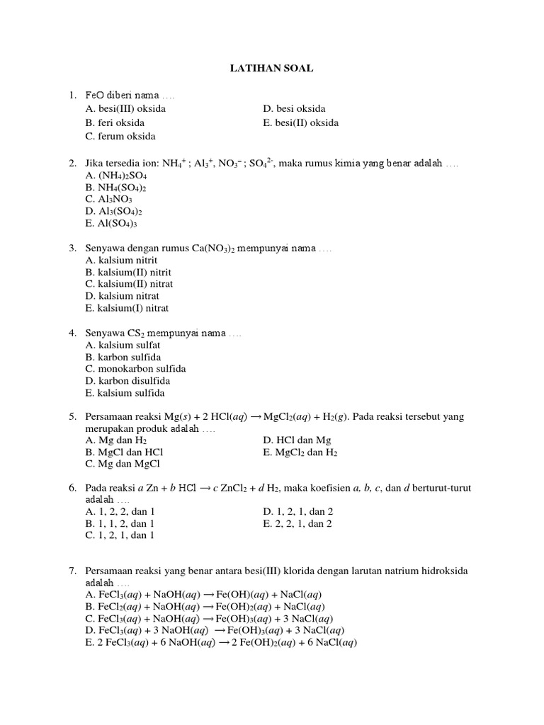 Bank Soal Kimia Kelas 10 Sma Tentang Tata Nama Senyawa Dan Persamaan