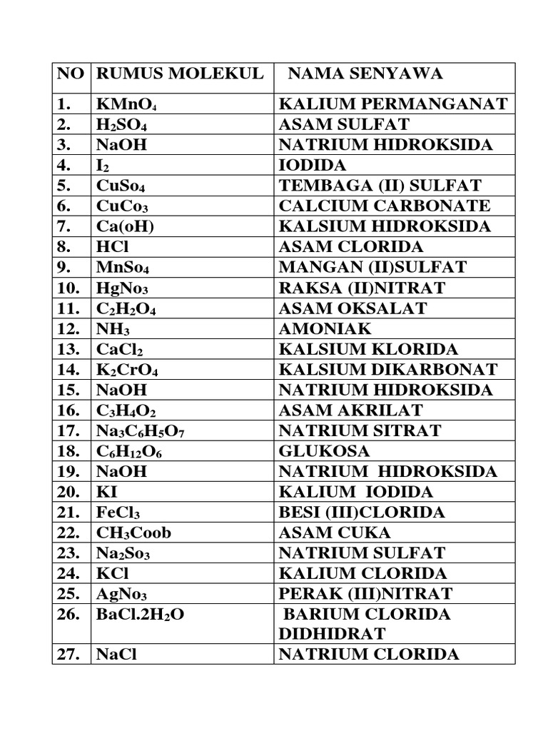 Nama Senyawa Dan Rumus Kimia Situs Berita Pendidikan