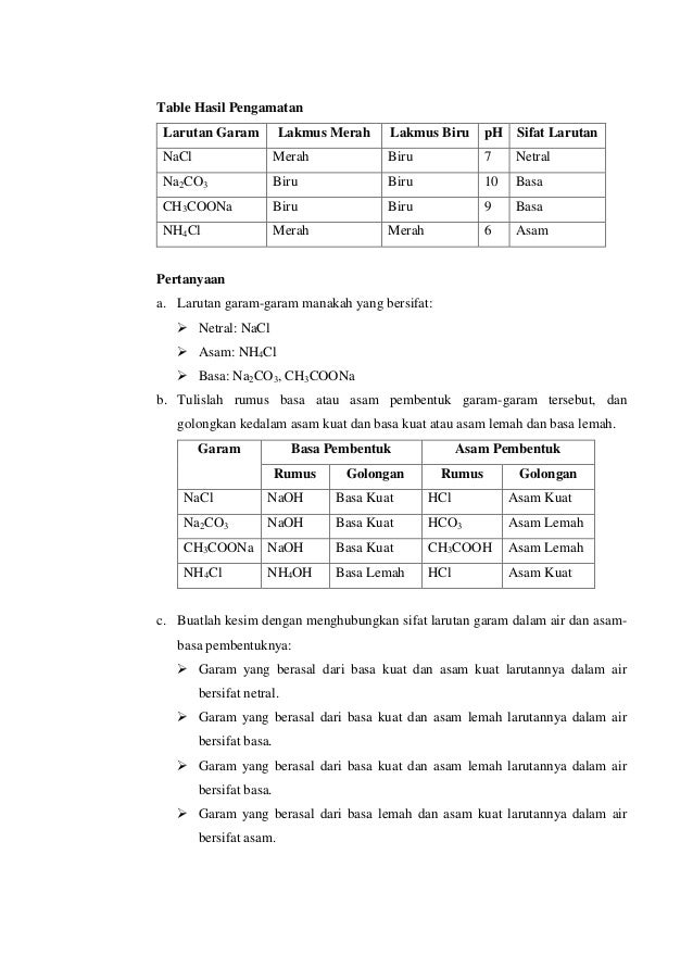Sebuah website berisi laporan praktikum kimia lengkap download gratis. Kimia study center contoh soal dan pembahasan tentang hidrolisis larutan garam dan menentukan ph atau poh larutan garam kimia sma kelas 11 ipa. Ppm atau nama kerennya part per million jika dibahasa indonesiakan akan menjadi bagian per sejuta bagian adalah satuan konsentrasi yang sering.