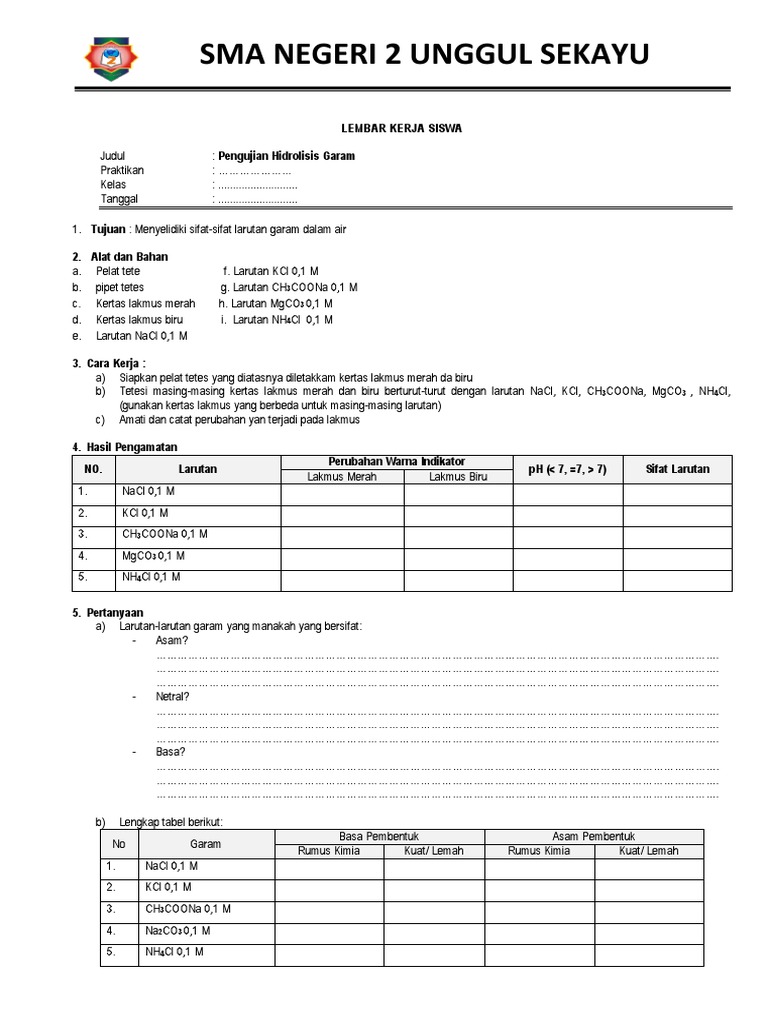 Contoh Soal Hidrolisis Garam Kumpulan Koleksi Pilihan Kimia Kelas