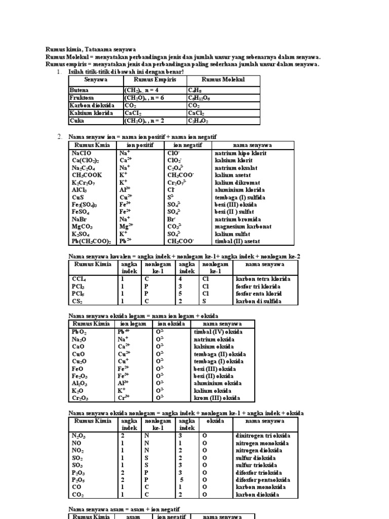 Rumus Kimia Tata Nama Senyawa Dan Pers Rx