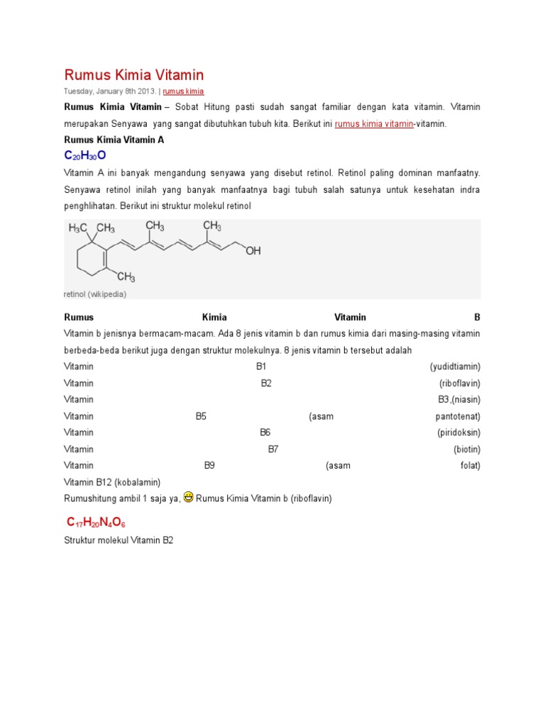 Vitamin c merupakan jenis asam yang kita kenal dengan nama asam askorbat. Rumus kimia vitamin vitamin adalah senyawa organik yang dibutuhkan dalam jumlah kecil untuk mempertahankan kehidupan. Jadi vitamin ialah zat zat organik kompleks yang dibutuhkan daam jumlah sangat kecil yang pada umumnya tidak dapat dibentuk oleh tubuh.