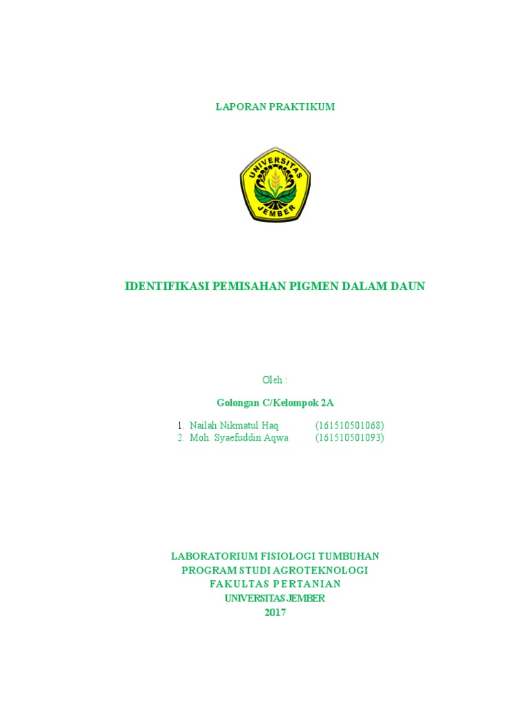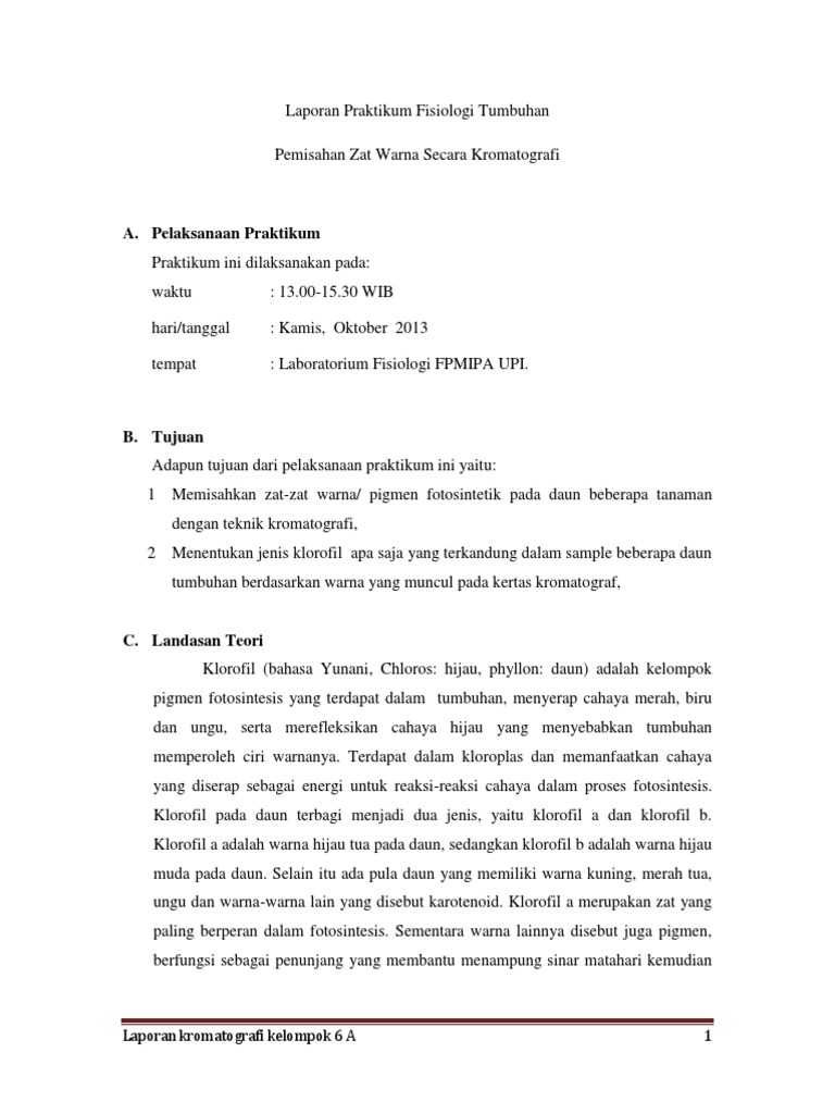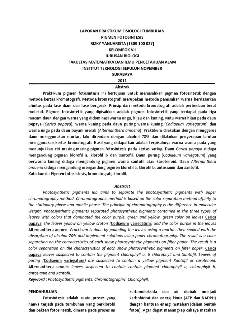 Laporan Praktikum Fisiologi Tumbuhan Pigmen Fotosintes Fotosintesis