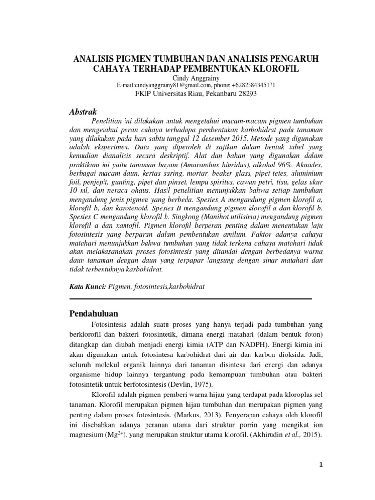 Analisis Pigmen Tumbuhan Dan Analisis Pe Docx