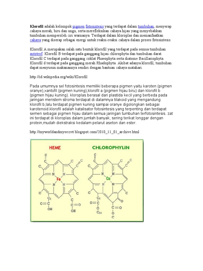 Perbedaan Pigmen Klorofil A Dan Klorofil