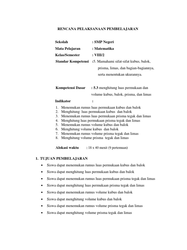 Rencana Pelaksanaan Pembelajaran Kelas 8 5 3