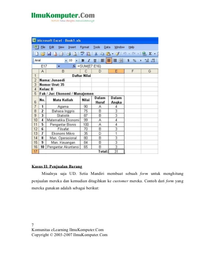 Pengantar Aplikasi Komputer Microsoft Excel Rumus If