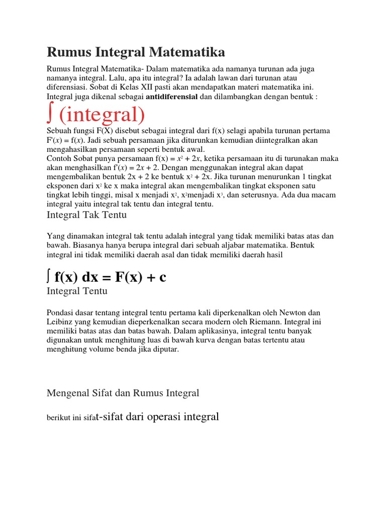 Beberapa Rumus Integral Dalam Matematika Naufal Travel
