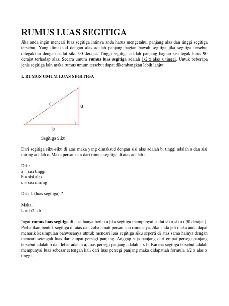 Rumus Untuk Mencari Luas Dan Keliling Segitiga