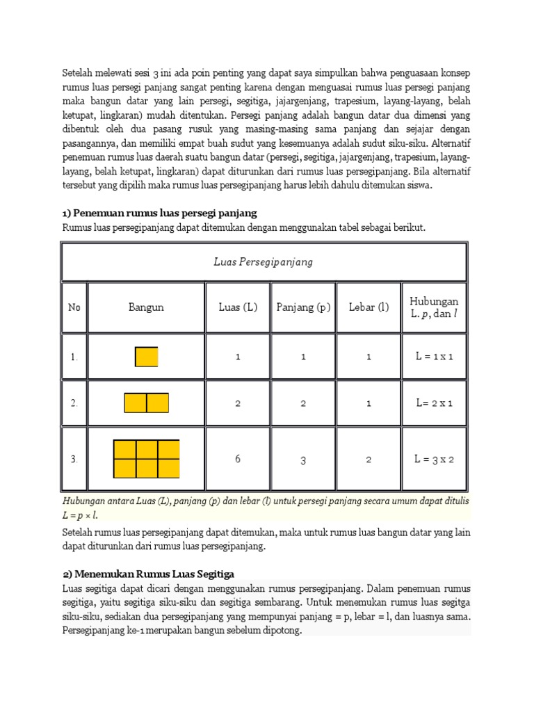 Mencari Rumus Luas Segitiga Dari Rumus Luas Persegi Panjang Pdf