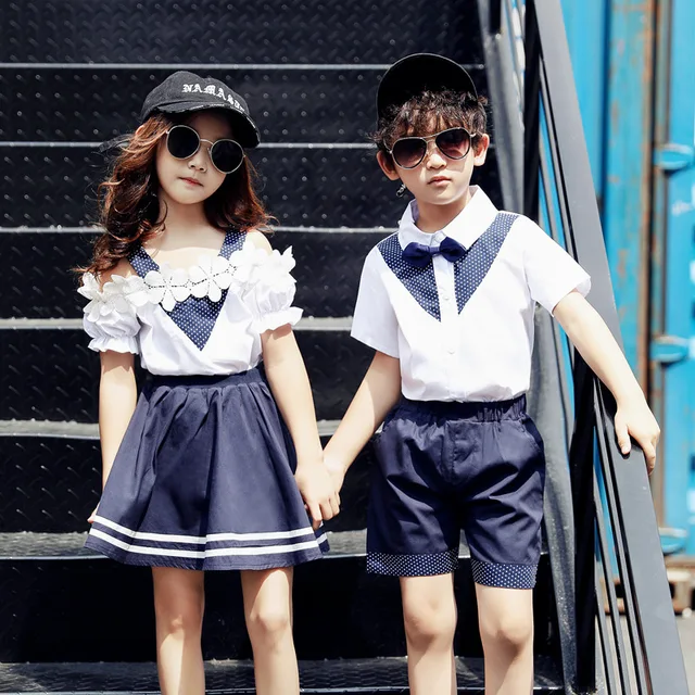 Anak Musim Panas Katun Biru Korea Inggris Jepang Seragam Sekolah