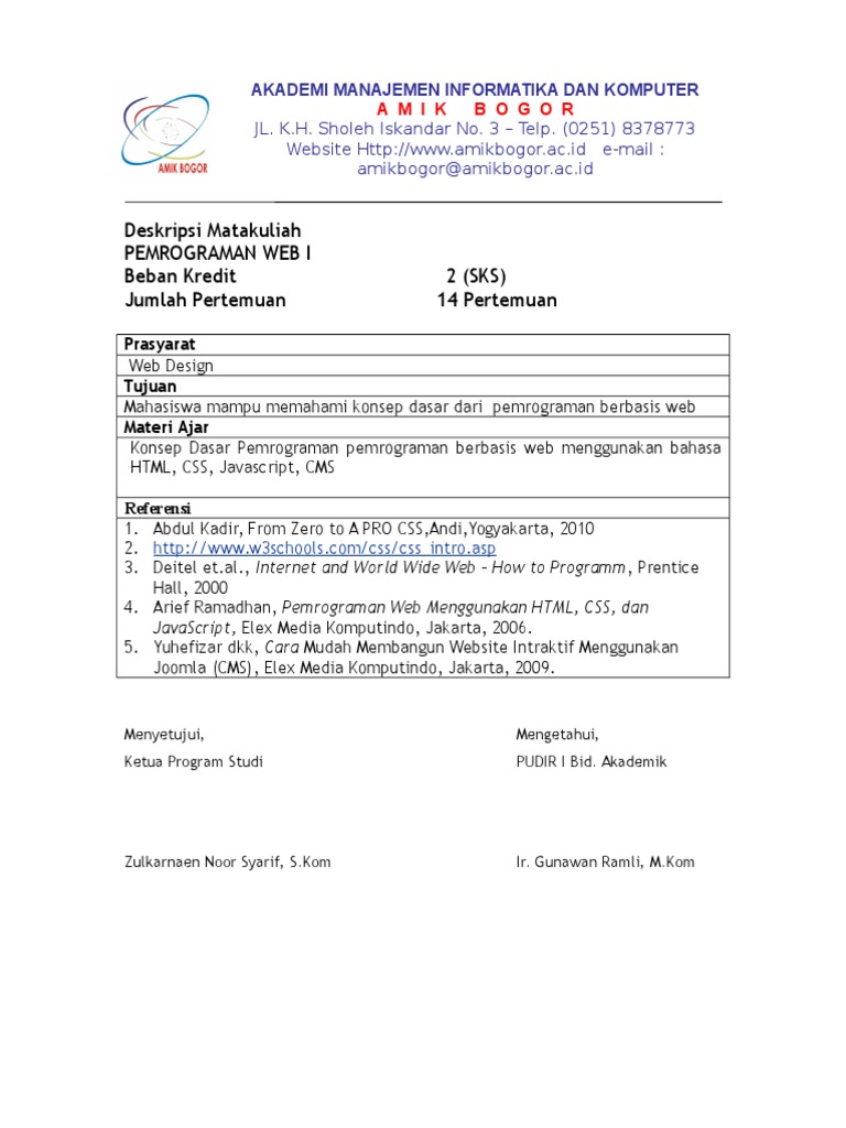 Silabus Pemrograman Web 1 Amik