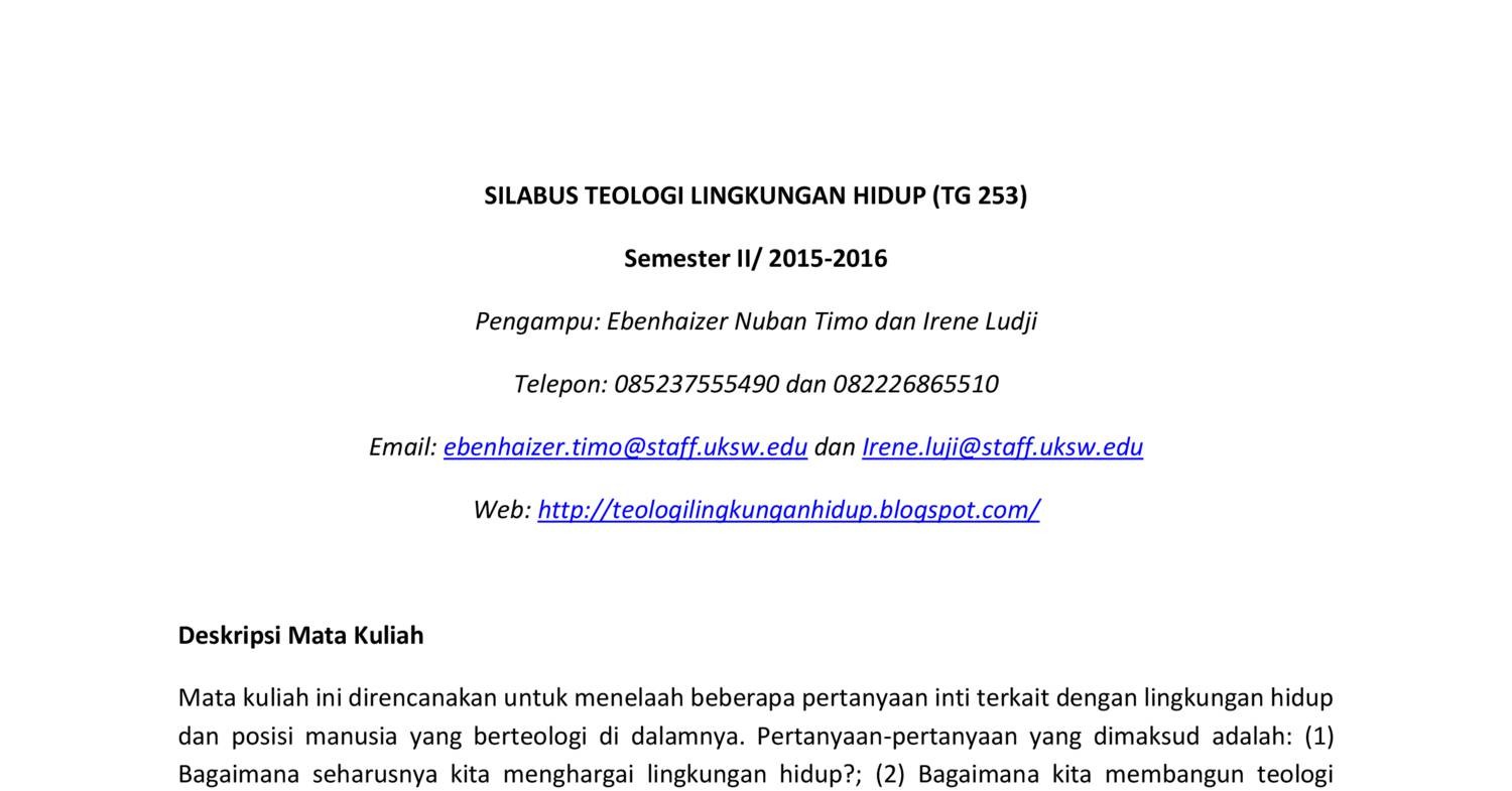 Silabus Teologi Lingkungan Hidup Docx Docdroid