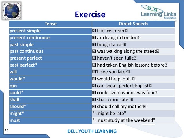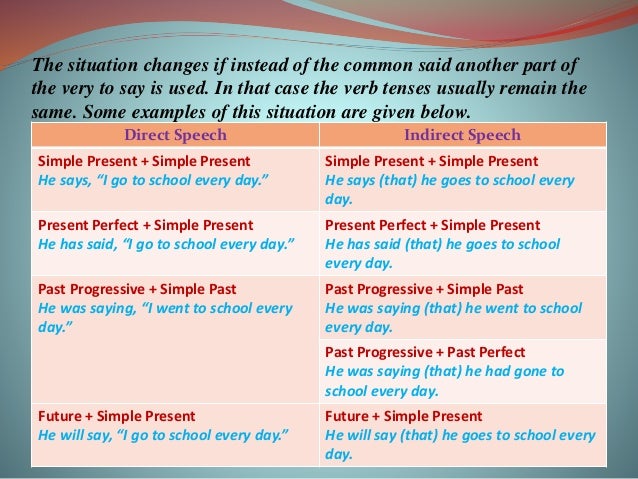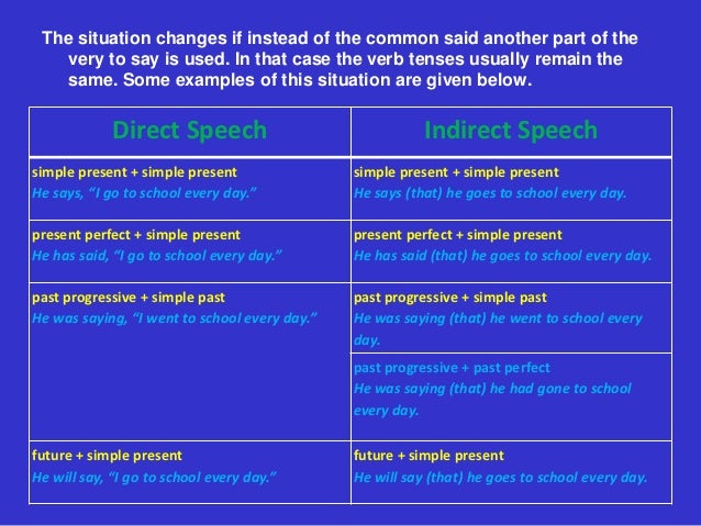 Direct And Indirect Speech Verb Tense Changes 7 E S L