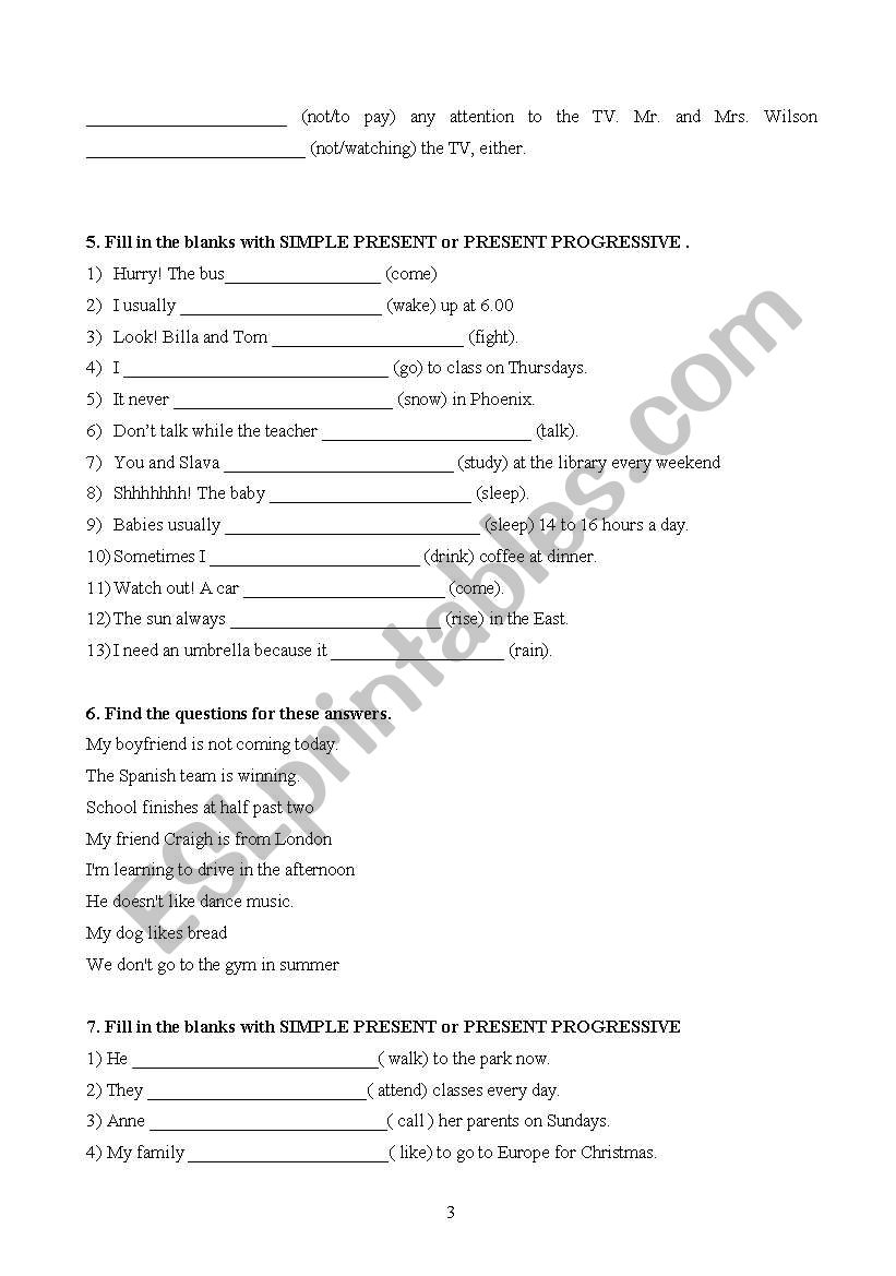 Simple Present And Present Progressive Worksheets The Best