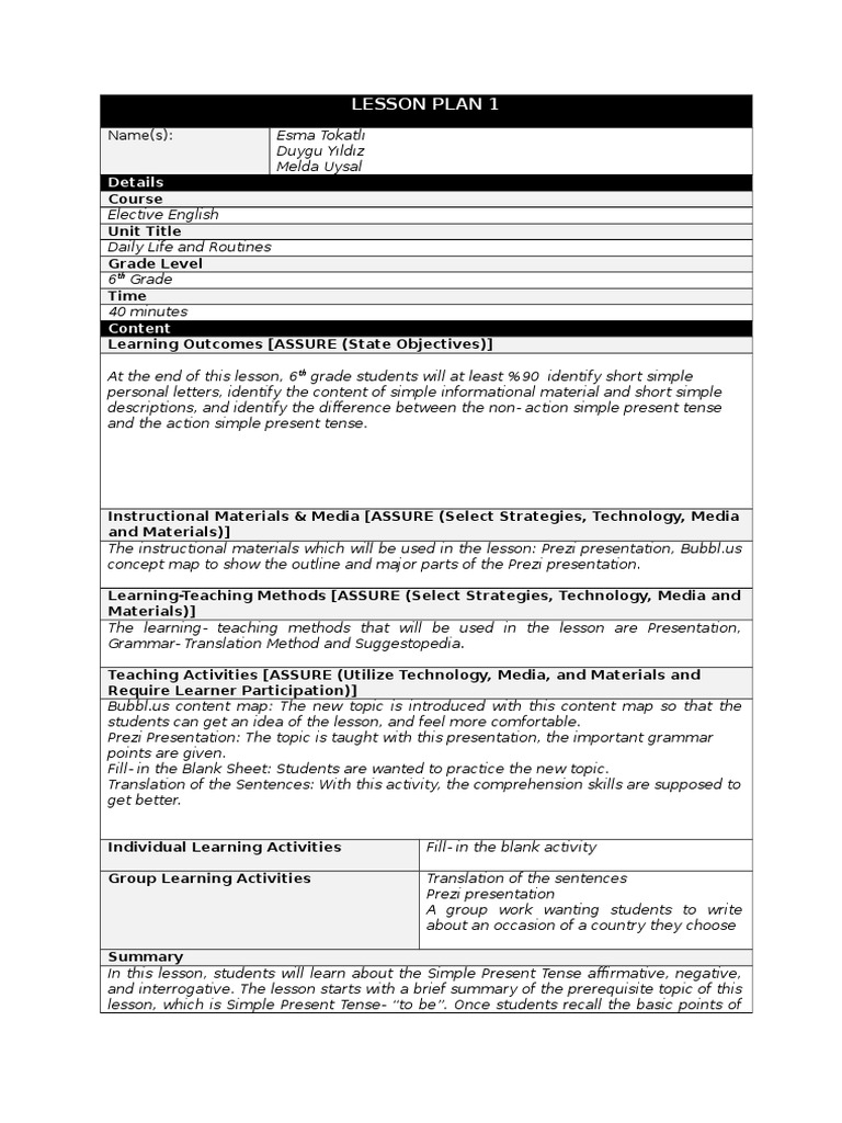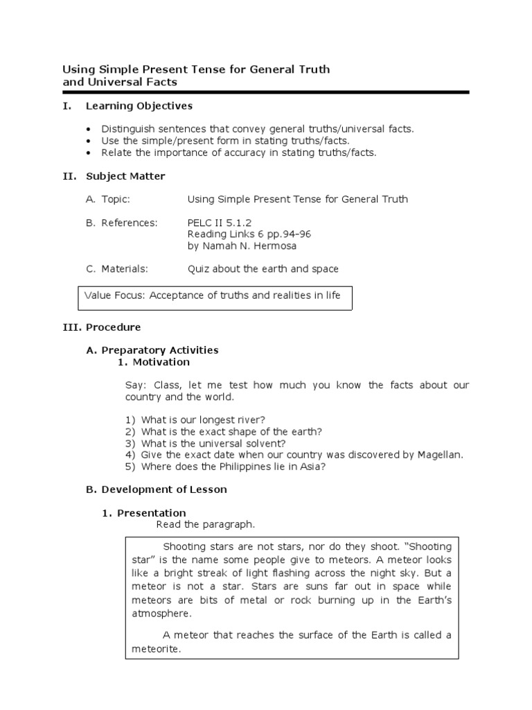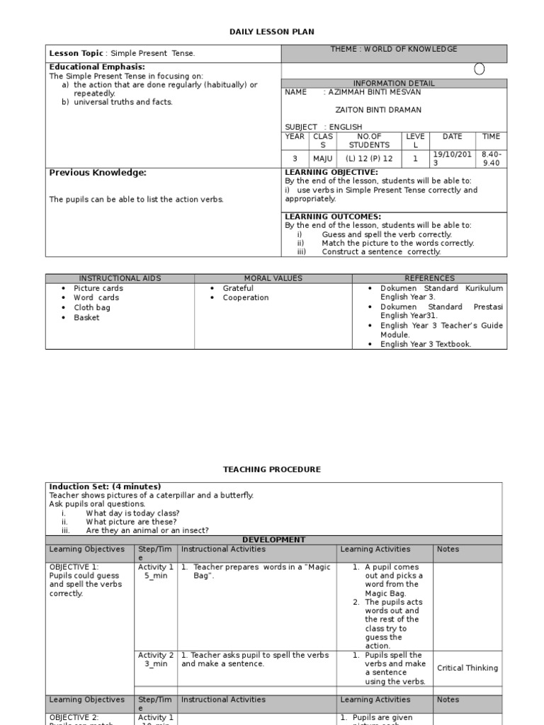 Lesson Plan Simple Present Tense Lesson Plan Rules