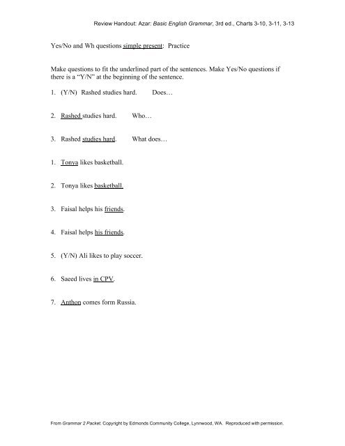 Yes No And Wh Questions Simple Present Azargrammar Com