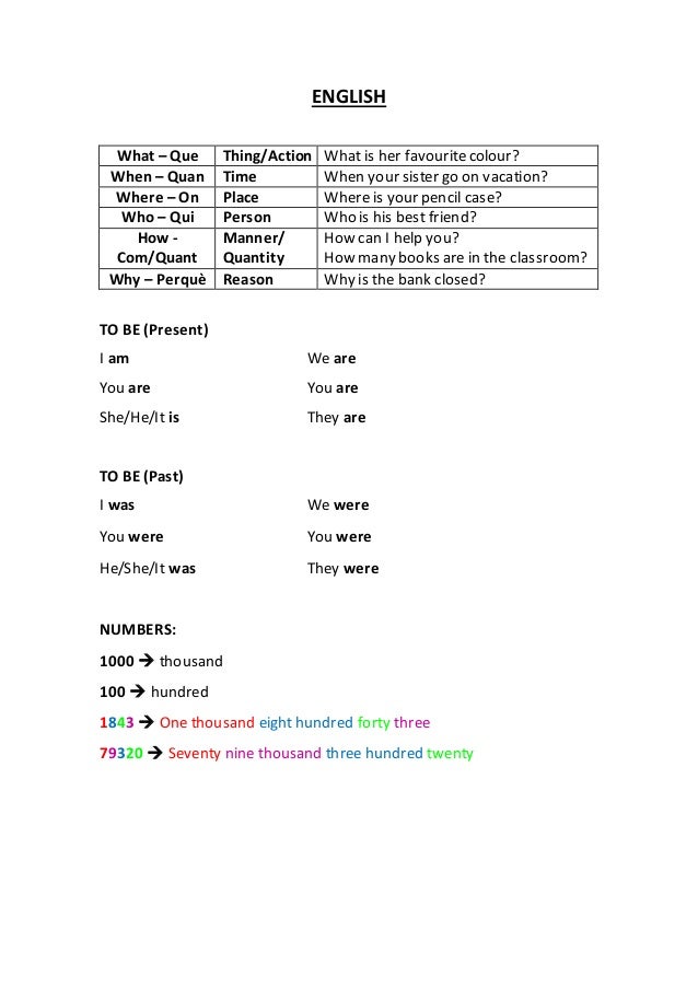 English Resum To Be Past Simple Present Simple Question Words Nu
