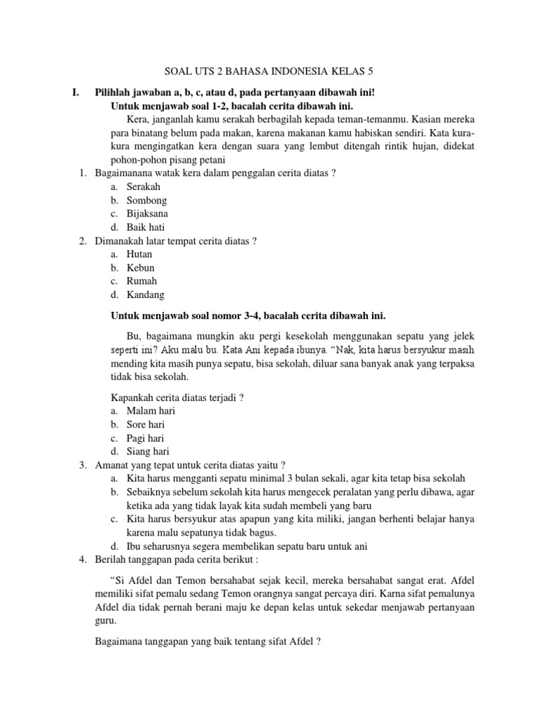 Soal Uts 2 Bahasa Indonesia Kelas 5 Sd