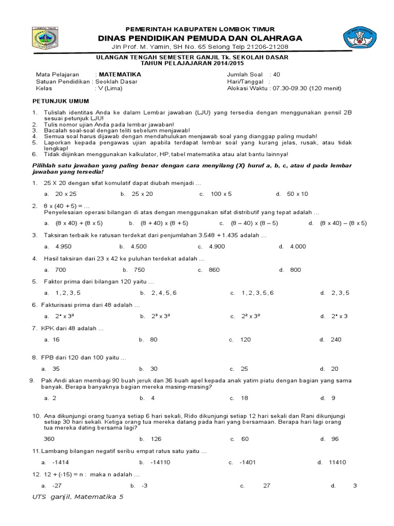 Soal Latihan Us Matematika Sd 2015