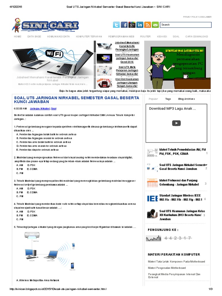 Download Cepat Soal Uts Jaringan Nirkabel Semester Gasal Beserta