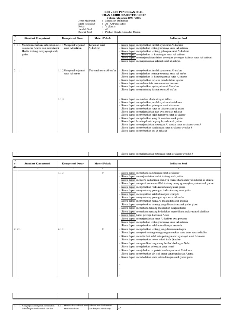 Soal Ujian Akhir Semester Ganjil Al Qur An Hadits Objektif Dan Essay