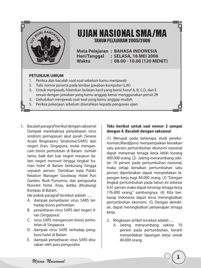 Naskah Soal Un Bahasa Indonesia Sma 2010 Paket 12 Pdf Download