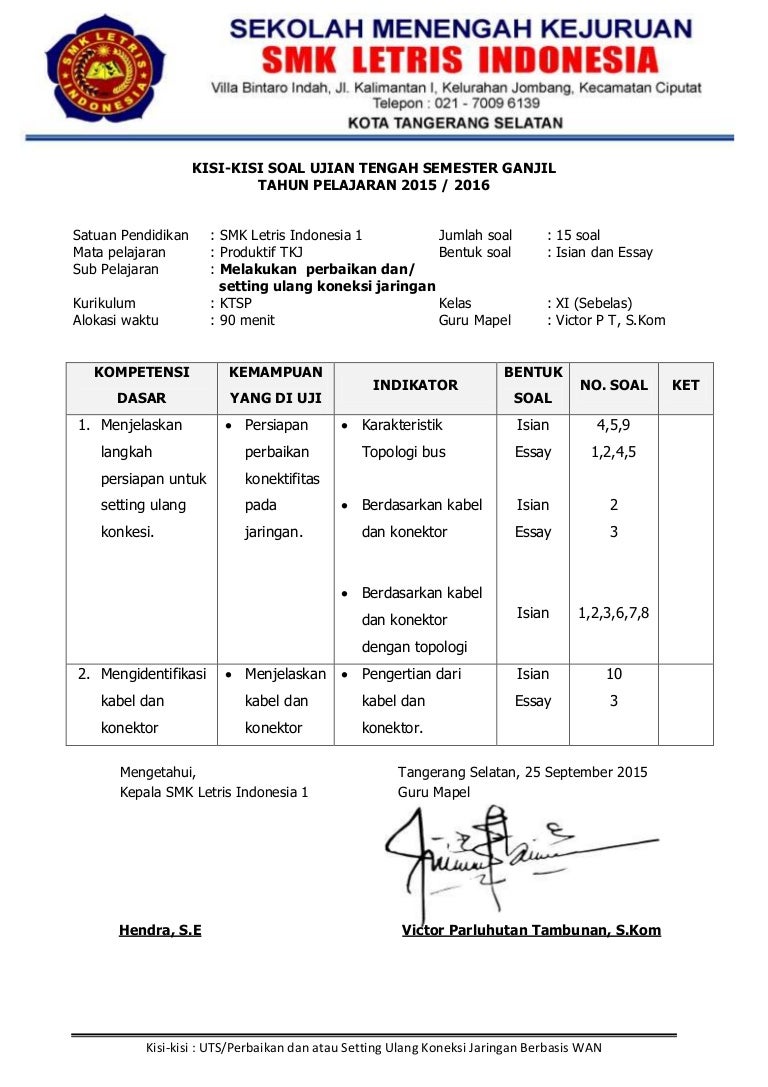 Kisi Kisi Soal Uts Melakukan Perbaikan Dan Atau Setting Ulang Konek