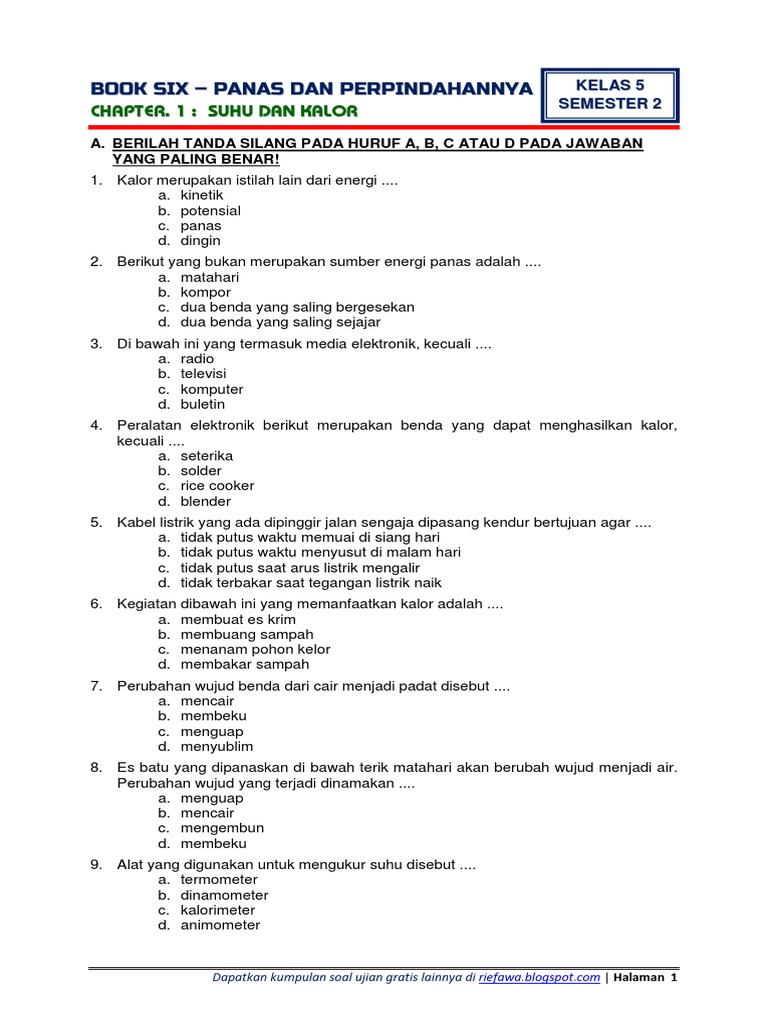 Download Soal Tematik Kelas 5 Sd Tema 6 Subtema 2 Panas Dan