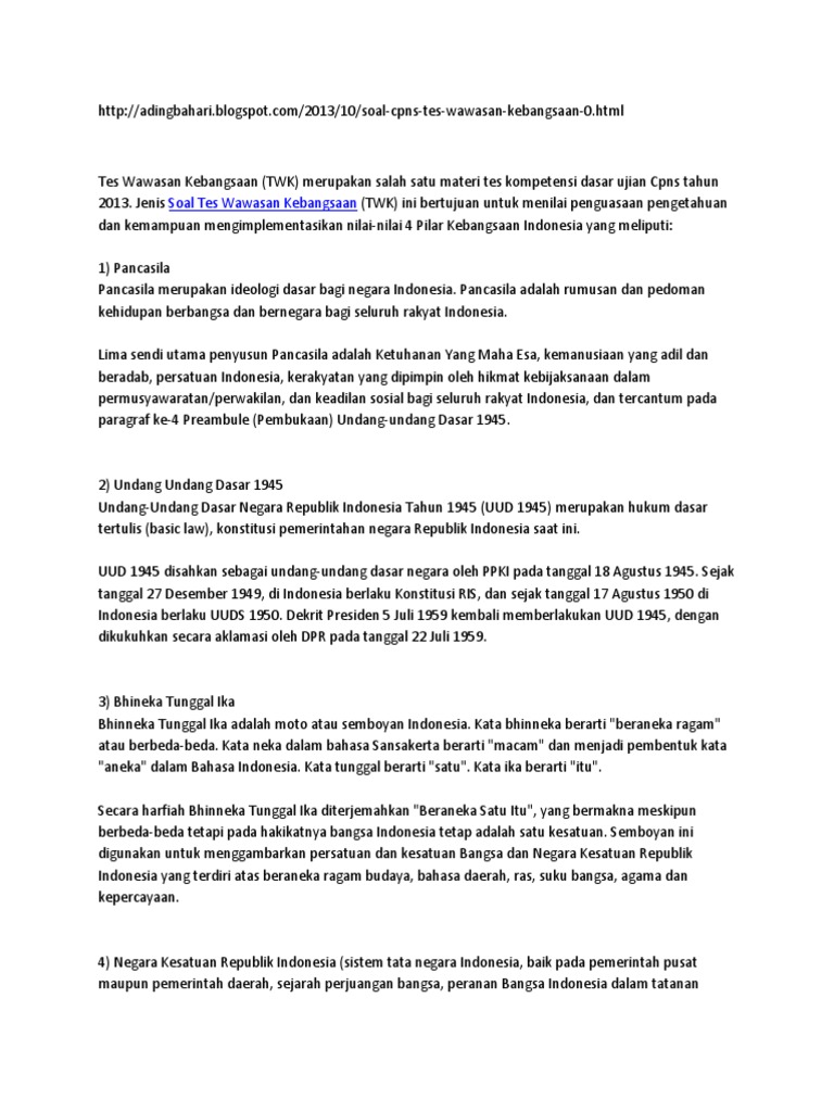 Contoh Soal Cpns Pdf Wawasan Kebangsaan