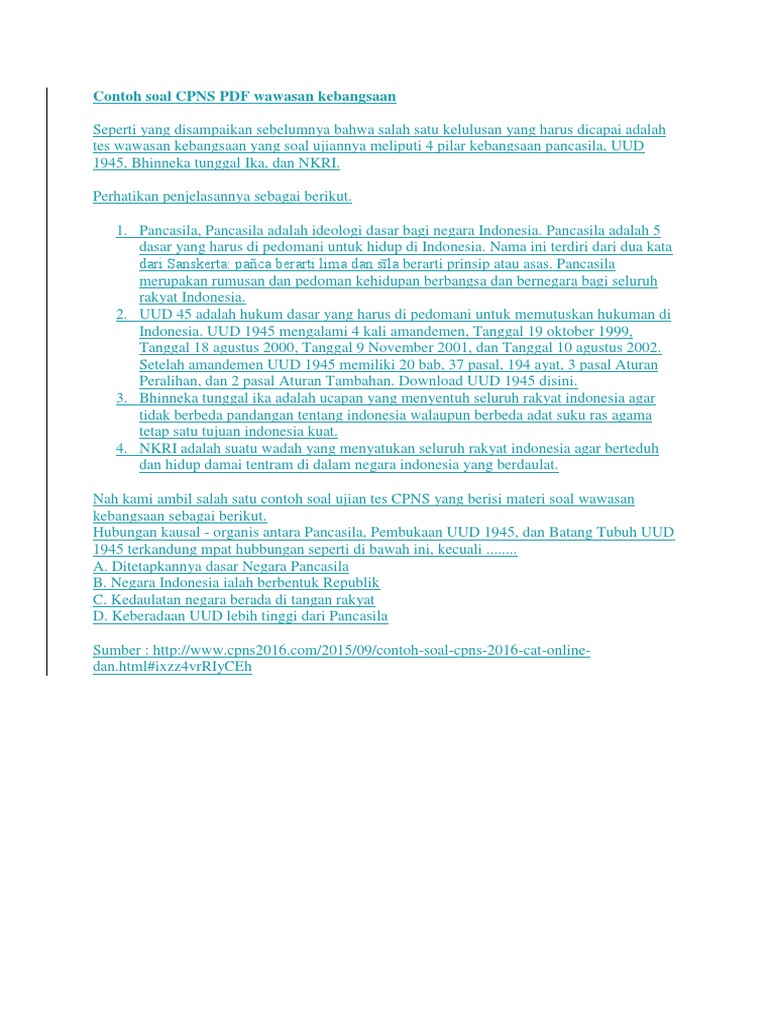 Contoh Soal Cpns 2018 Pdf Wawasan Kebangsaan