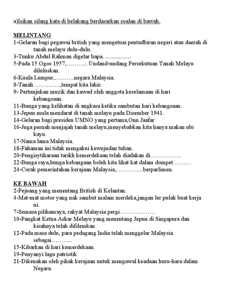 Pelbagai Soalan Teka Silang Kata Sejarah Tingkatan 1 Yang Sangat