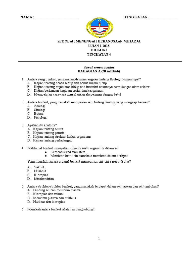 Senarai Latihan Biologi Tingkatan 5 Yang Bermanfaat Khas Untuk