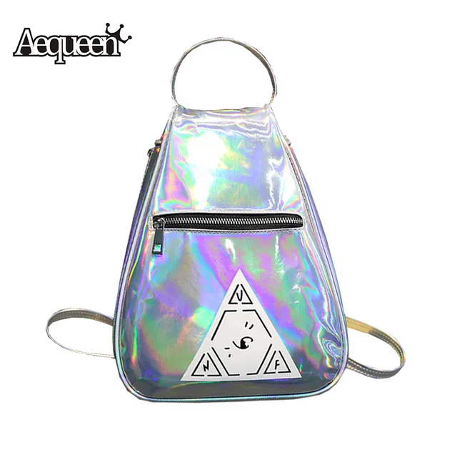 Aequeen Segitiga Bahu Hologram Hologram Laser Ransel Kulit Wanita