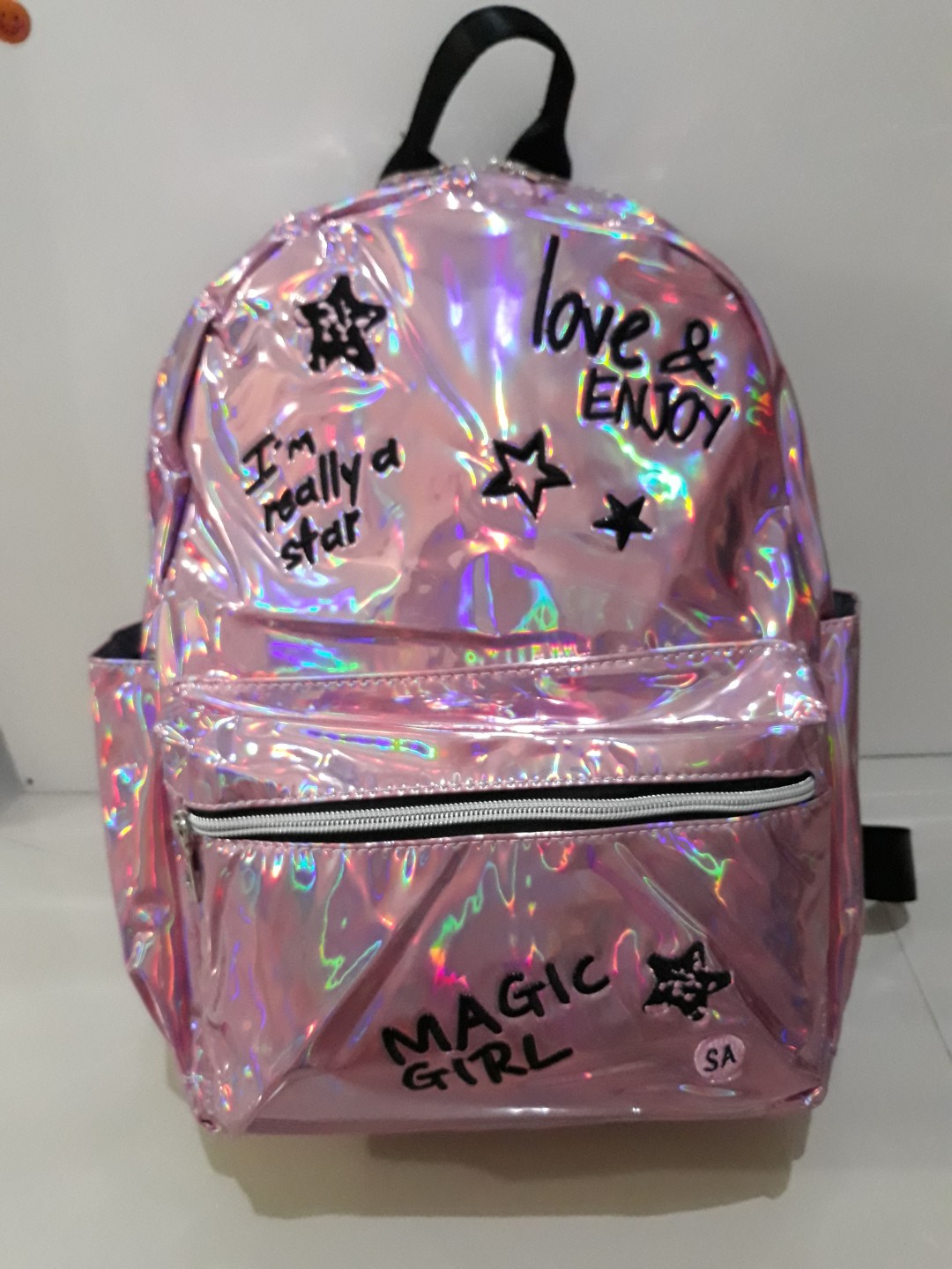 Tas Ransel Sekolah Hologram Pink Silver Women S Fashion Women S