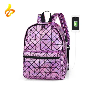 2017 Wanita Geometris Ransel Bahu Siswa Sekolah Tas Ransel Bercahaya