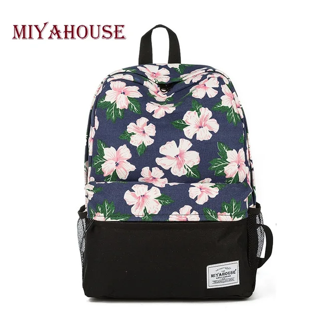 Miyahouse Unik Percetakan Ransel Wanita Bunga Bookbags Ransel Kanvas