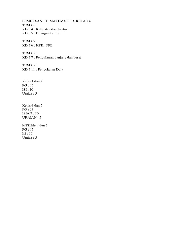 Soal Matematika Uts Genap Kelas 4 Tema 6 Dan Tema 7 Tahun 2018
