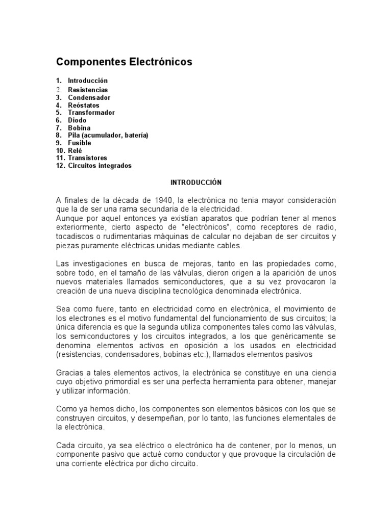 En electronica vamos a usar una serie de componentes o elementos que van a formar los circuitos y conviene saber identificarlos correctamente. Componentes de los equipos y materiales. Componentes electronicos 21 resistencias en las resistencias el choque de los electrones con los atomos produce una perdida de.