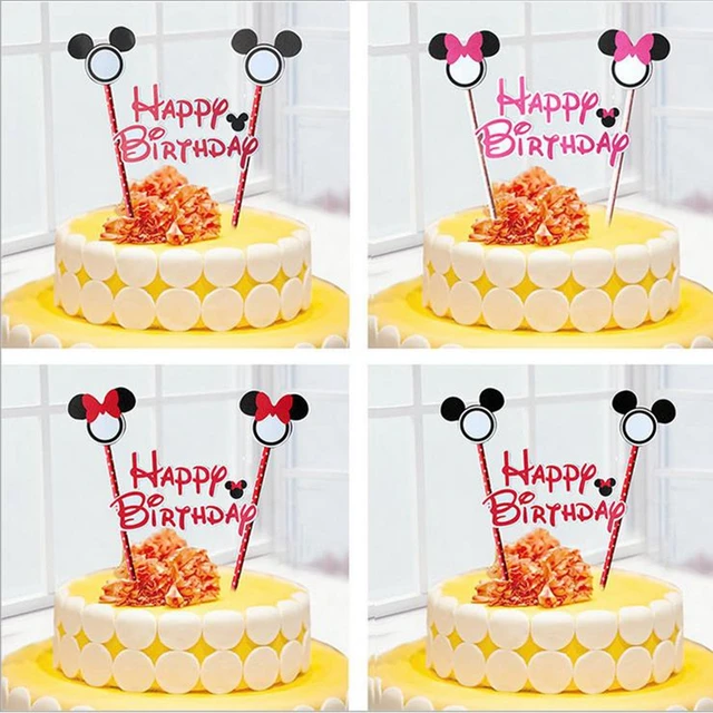 2 Pcs Mickey Minnie Mouse Tema Selamat Ulang Tahun Cupcake Kue