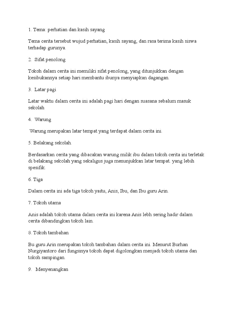 Unsur Intrinsik Pada Cerpen Antara Lain