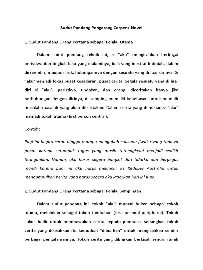 Sudut Pandang Pengarang Cerpen