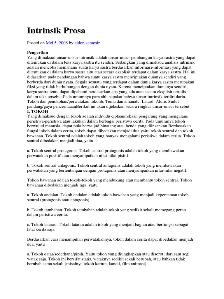 Unsur Intrinsik Dan Ekstrinsik Prosa
