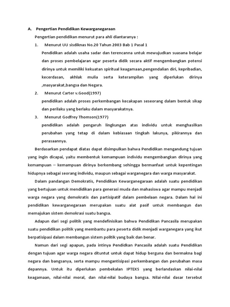 Pengertian Hakikat Pendidikan Kewarganegaraan Adalah Upaya Sadar Dan