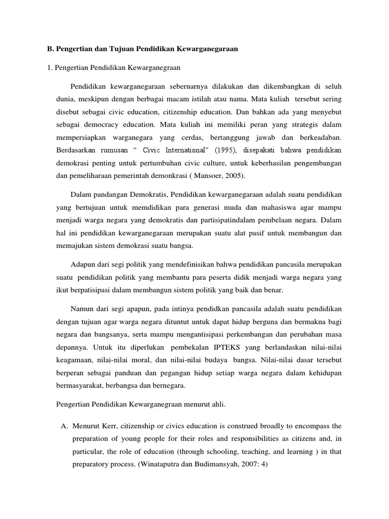 Pengertian Dan Tujuan Pendidikan Kewarganegaraan