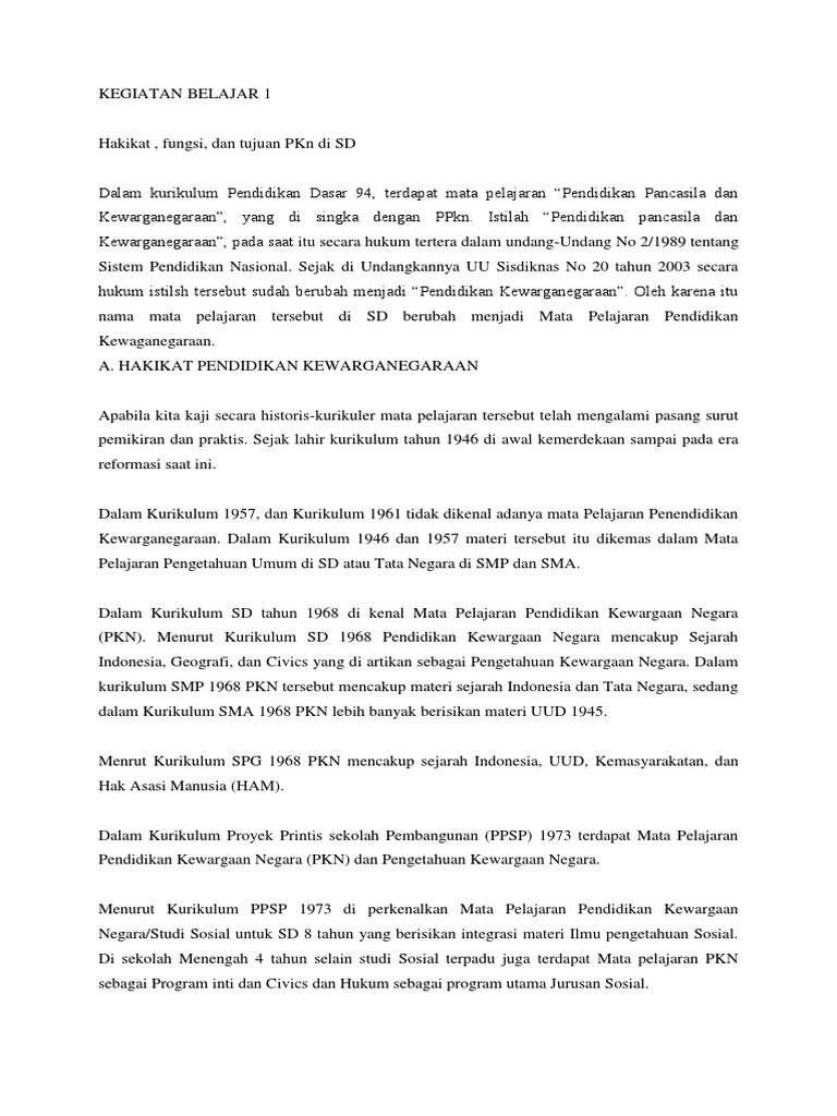 Hakikat Fungsi Dan Tujuan Pendidikan Pkn Di Sd Mi