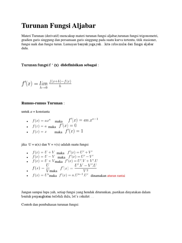 Turunan Fungsi Aljabar Baixar Materi