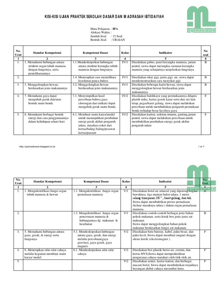 Kisi2 Ujian Praktek Ipa Mi Ayomadrasah