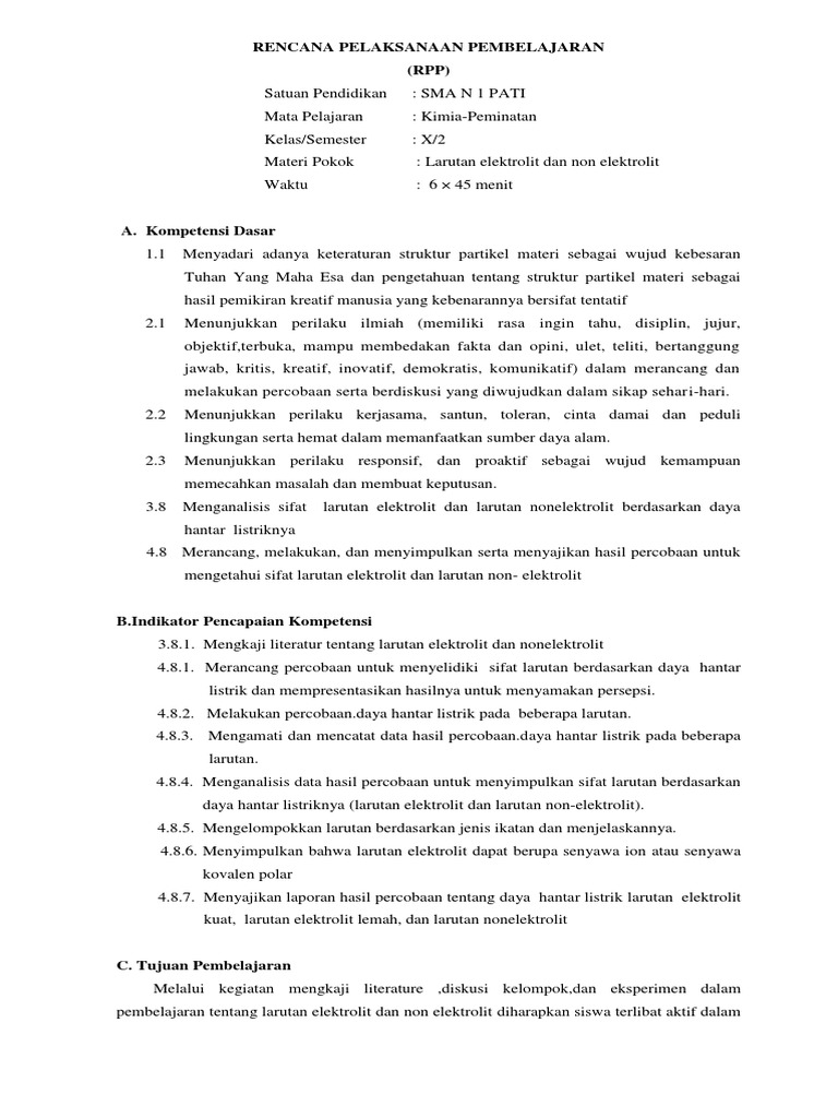 Docx Rpp 2013 Kd 3 2 Sifat Koligatif Larutan Elektrolit Dan