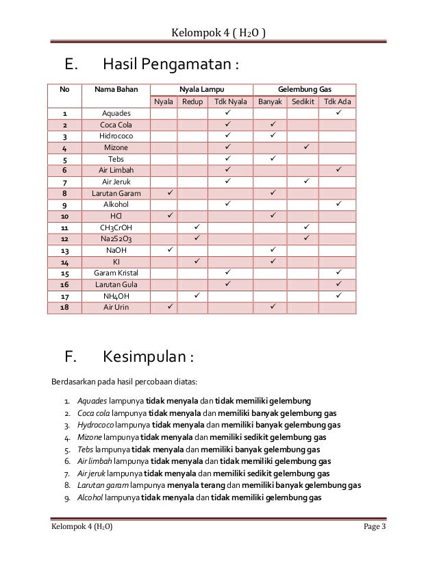 Contoh Laporan Kimia Larutan Elektrolot Dan Non Elektrolit